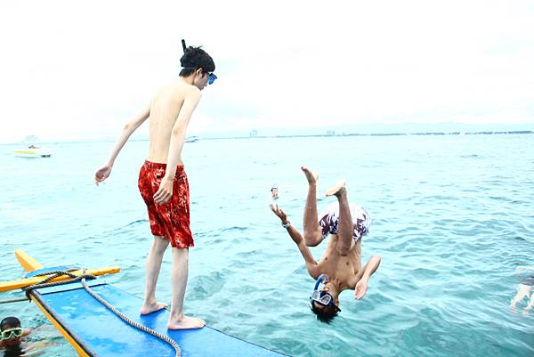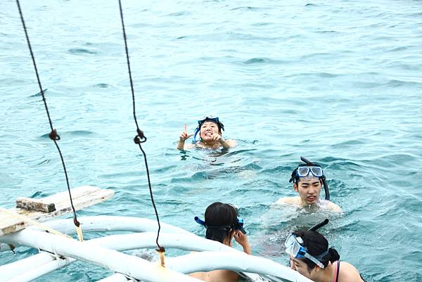 當船駛到某個海中央時,突然停了,老師告訴我們這裡就是可以跳水的點,其實這裡不只可以跳水,水裡的魚數量多到很驚人,根本不是你游向魚群,而是自己魚群游向你。