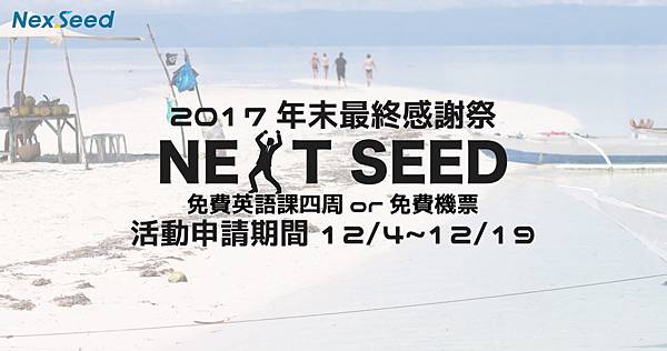 為了感謝大家對NEXSEED的支持我們將贈送二個名額讓台灣地區的朋友們免費至宿霧學習英語4周。