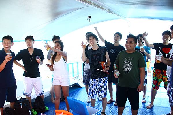 當船駛到某個海中央時,突然停了,老師告訴我們這裡就是可以跳水的點,其實這裡不只可以跳水,水裡的魚數量多到很驚人,根本不是你游向魚群,而是自己魚群游向你。