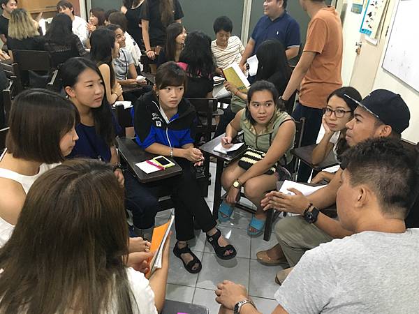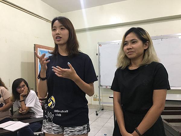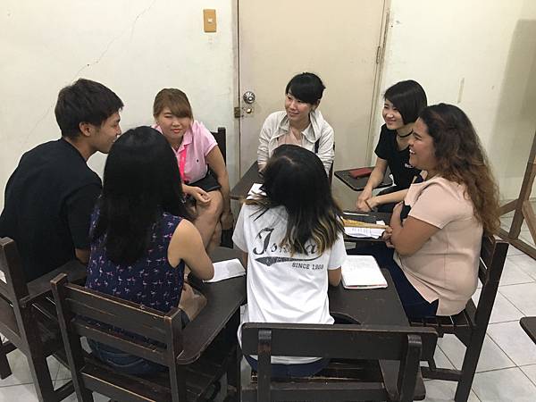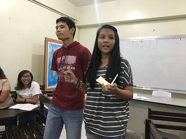 這禮拜的團體課我們討論了彼此自己參加過的社團,像是話劇社、排球社、登山社、籃球社等等。其實他們對日本的電影、偶像明星、歌曲、動漫等等如數家珍。總之,這是一次很棒的體驗課,可以藉這次機會和菲律賓大學生接觸,了解他們的想法以及對什麼感興趣。