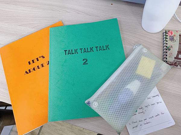 目前小編是進階到Let's argue,我最喜歡這種辯論形式,字彙和議題難度越來越高。自己當下想表達卻不會說的單字,經由老師補充印象更加深刻,